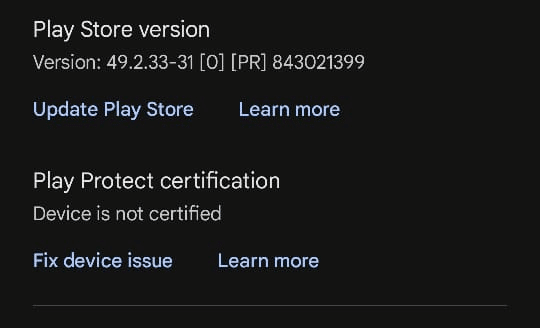 إذا تم وضع علامة على جهازك على أنه غير معتمد (غالبًا بسبب فتح محمل الإقلاع، أو ROMs المخصصة، أو شهادة Google المفقودة، أو صور النظام المعدلة)، فقد يقوم Play Store بوضع علامة على اللعبة على أنها غير متوافقة حتى لو كانت أجهزتك قوية بما يكفي.