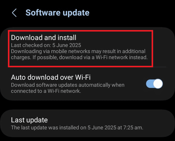 - ابحث عن تحديث البرنامج (قد تختلف الصياغة حسب العلامة التجارية).
