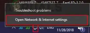- انقر بزر الماوس الأيمن على أيقونة الشبكة في علبة النظام وانقر على فتح إعدادات الشبكة والإنترنت.
