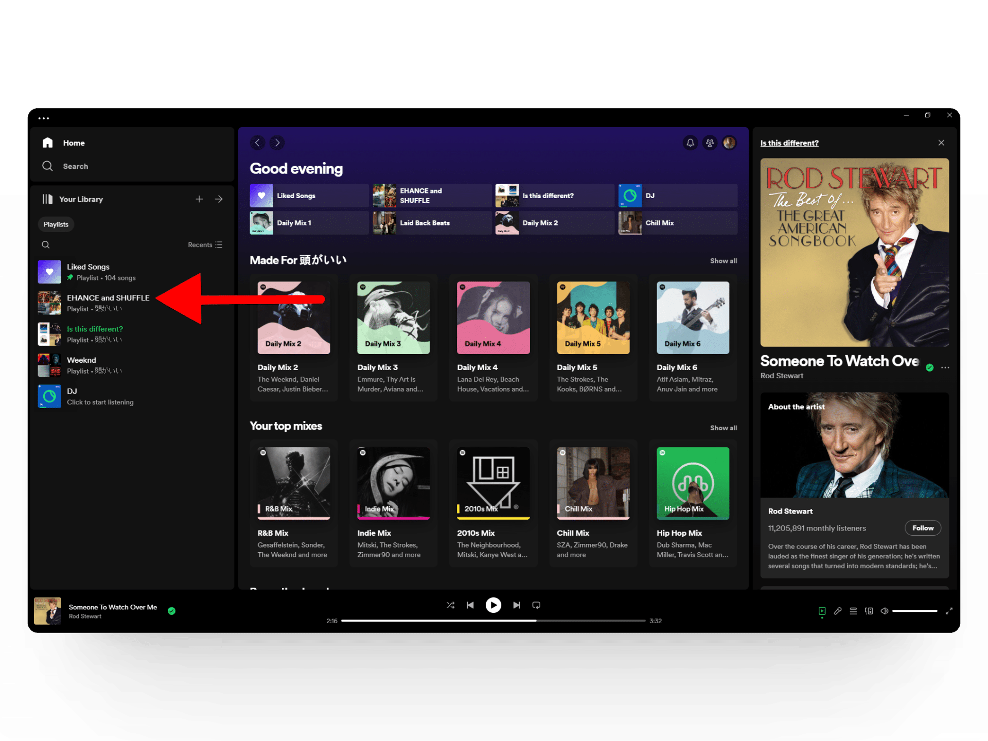 - افتح تطبيق Spotify لسطح المكتب وانتقل إلى قائمة التشغيل الخاصة بك.