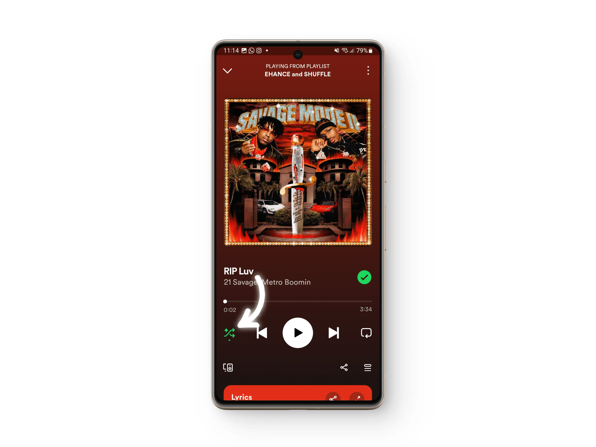 - ابحث عن أيقونة السهمين المزدوجين وانقر عليها مرتين لتمكين Smart Shuffle.