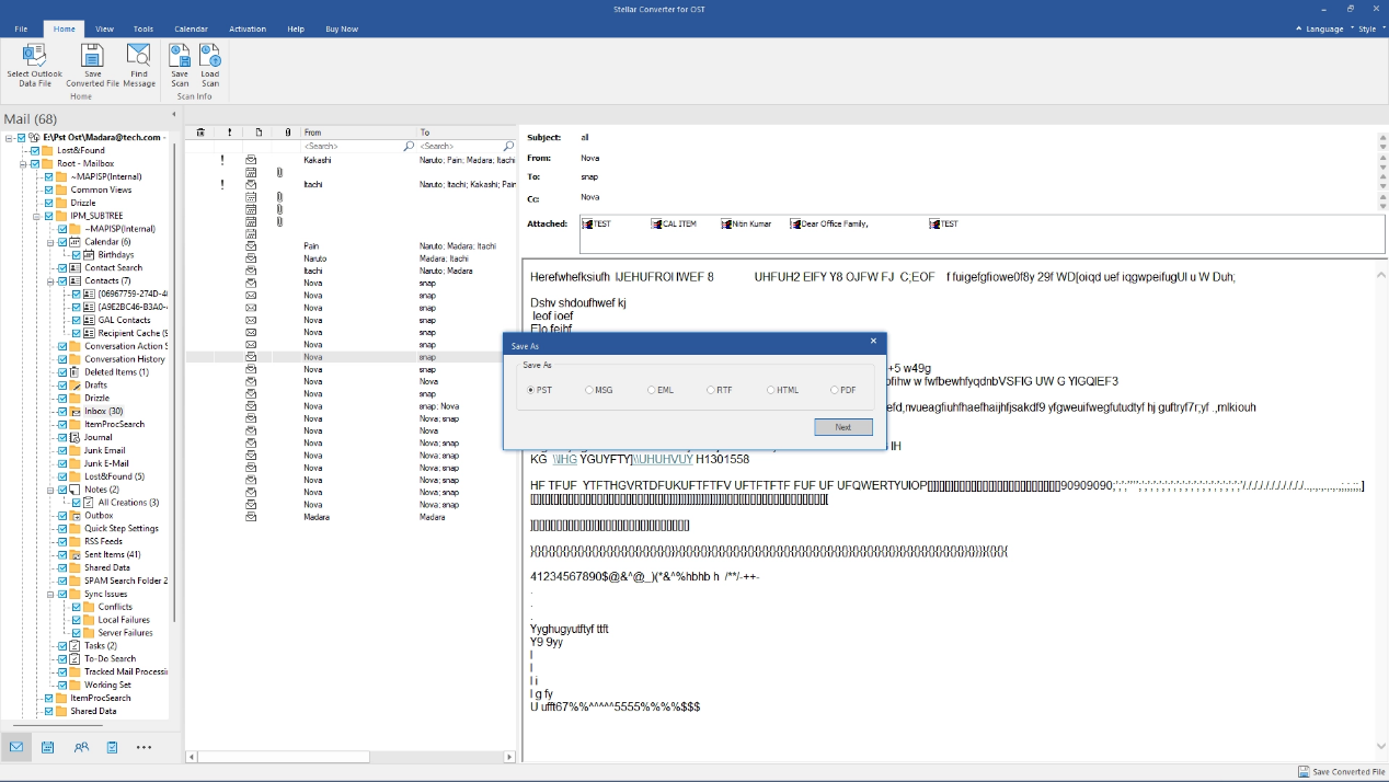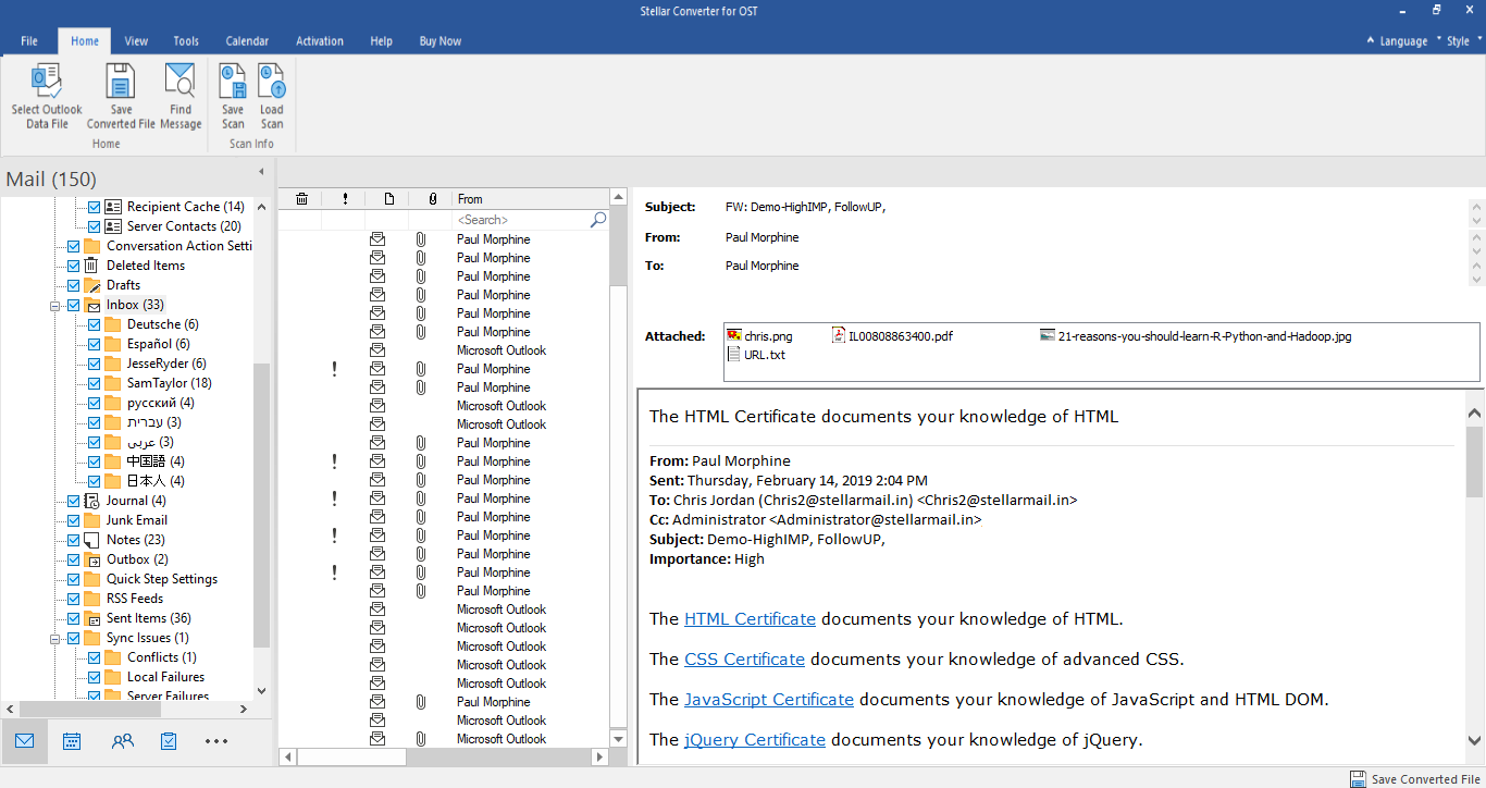 بمجرد اكتمال الفحص، قدم Stellar Converter for OST شجرة علبة بريد كاملة.