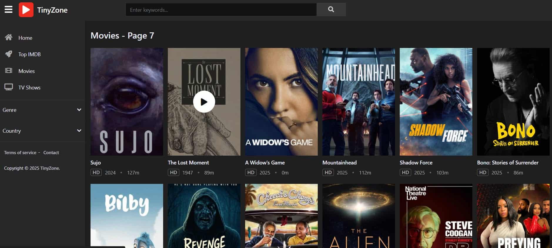 إذا كنت في مزاج لمشاهدة الأفلام لا غير، فإن TinyZone يقدم تشكيلة قوية دون الحاجة للتسجيل. يغطي مجموعة واسعة من الفئات، من الأفلام السيرة الذاتية إلى الموسيقية، مع خيارات فرز بناءً على سنة الإصدار والنوع. بينما لا يقدم مسلسلات تلفزيونية، فإن تصميمه السلس وسهولة التنقل فيه يجعلان منه خيارًا قويًا لعشاق الأفلام. ستجد هنا إصدارات جديدة بالإضافة إلى الجواهر المستقلة المخفية. فقط لا تعتمد عليه لبث المسلسلات.