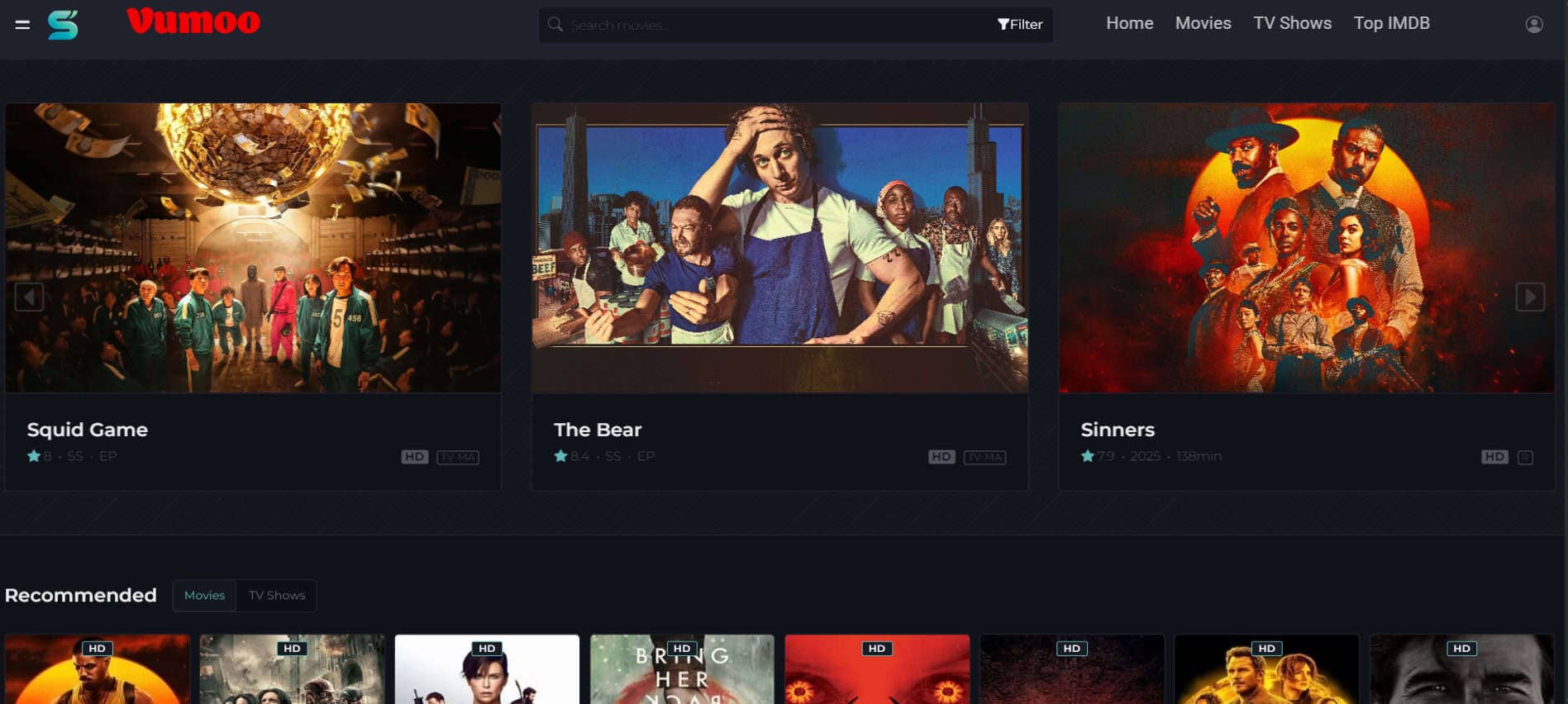 يكسب Vumoo مكانه بواجهة نظيفة وعدد أقل من النوافذ المنبثقة مقارنة بمعظم المواقع في هذه الفئة. إنه سريع التحميل، ولا يتطلب تسجيل دخول، ويدعم شبكات VPN بسهولة. سواء كنت ترغب في بث فيلم أو مشاهدة سلسلة كاملة، يحافظ Vumoo على سهولة الاستخدام. يحصل على أربعة على مقياس إزعاج الإعلانات ولديه روابط احتياطية مثل vumoo.cc و vumoo.space للموثوقية.