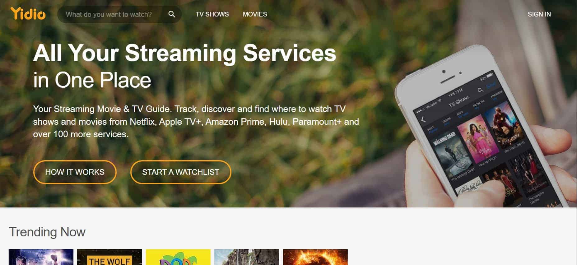Yidio ليس موقع بث نموذجي؛ إنه مجمع محتوى ذكي. يجمع قوائم من المنصات الرئيسية ويخبرك بالضبط أين تجد الفيلم أو العرض الذي تبحث عنه. على الرغم من أنه يتطلب حسابًا وقد لا يكون دائمًا شبكة VPN المفضلة لديك، إلا أن شبكات VPN المتميزة مثل NordVPN أو ExpressVPN تنجز المهمة. تصميمه الفريد المرتكز على البحث يجعله مفيدًا للغاية للعثور بسرعة على البث القانوني. إذا مللت من التنقل بين المواقع، فإن Yidio يجمع كل شيء في مركز واحد منظم.