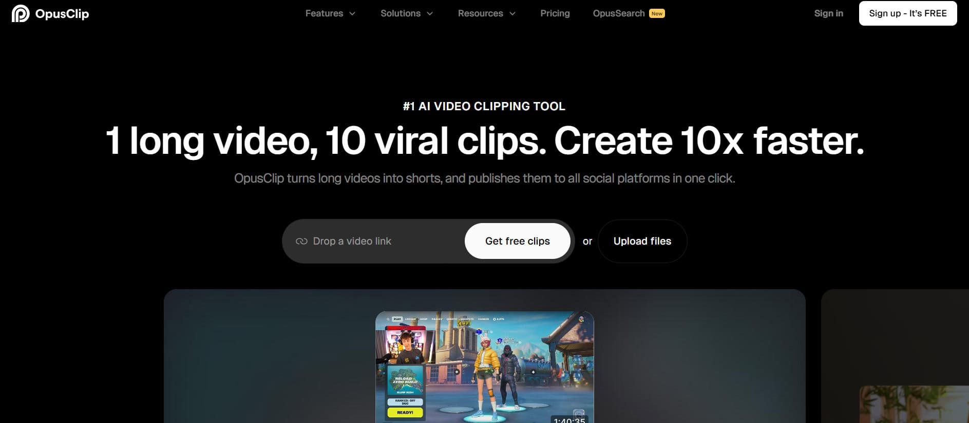 هل لديك فيديو طويل ولكنك ترغب في مشاركة أبرز اللحظات القصيرة على Instagram؟ يقوم Opus Clip بتقسيم المحتوى الأطول إلى مقاطع قصيرة وجذابة مثالية لوسائل التواصل الاجتماعي. يحدد الذكاء الاصطناعي اللحظات الرئيسية، ويضيف التسميات التوضيحية، ويحسن التخطيط للشاشات العمودية. إنه المفضل لدى مدوني البودكاست ومستخدمي YouTube الذين يتطلعون إلى إعادة استخدام أفضل أجزاء محتواهم. يمكنك تحويل فيديو واحد مدته 30 دقيقة إلى منشورات Instagram تكفي لأسبوع كامل بأقل جهد.