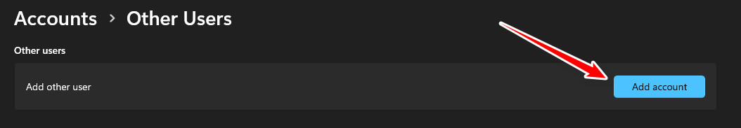 - انقر فوق إضافة حساب وأنشئ مستخدمًا محليًا جديدًا.