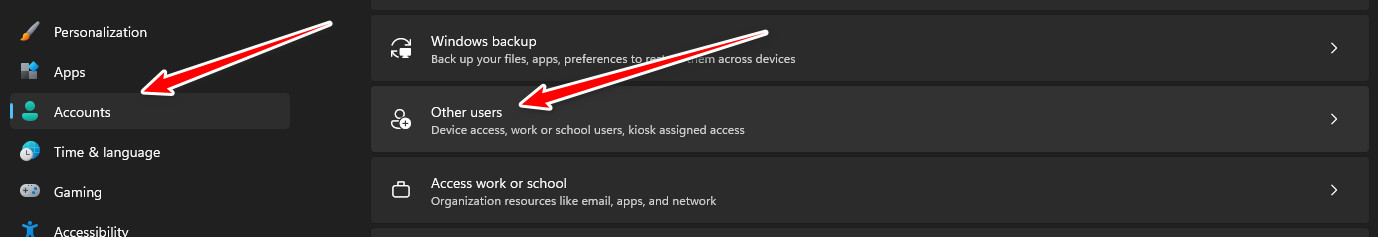 - انتقل إلى الحسابات ← العائلة والمستخدمون الآخرون (أو مستخدمون آخرون في بعض إصدارات Windows).