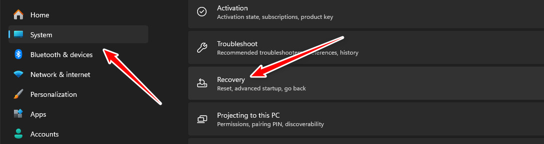 - انتقل إلى النظام ← الاسترداد.