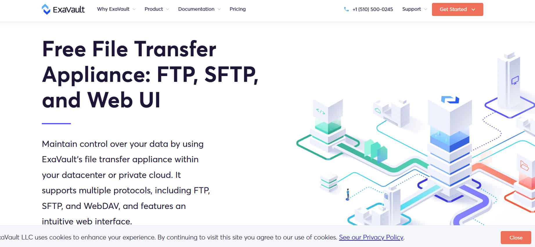 ExaVault هي منصة SaaS قائمة على السحابة تقدم خدمات FTP مستضافة يمكن الوصول إليها عبر المتصفح أو دمجها في الأدوات اليومية مثل مجموعات الإنتاجية أو محركات الأقراص السحابية. تدعم عمليات نقل الملفات الآمنة عبر SFTP و SCP و WebDAV، وتوفر حتى أدوات واجهة مستخدم (widgets) قابلة للتضمين لرفع/تنزيل الملفات للمواقع الإلكترونية عبر واجهة برمجة التطبيقات (API) الخاصة بها. يمكن مشاركة الملفات عبر روابط آمنة أو مزامنتها عبر الأجهزة للمستخدمين الداخليين. يمكن استخدام النظام أيضًا للنسخ الاحتياطي ومزامنة التخزين السحابي. بفضل تصميمه سهل الدمج، يتناسب ExaVault بسلاسة مع سير العمل الحالي.