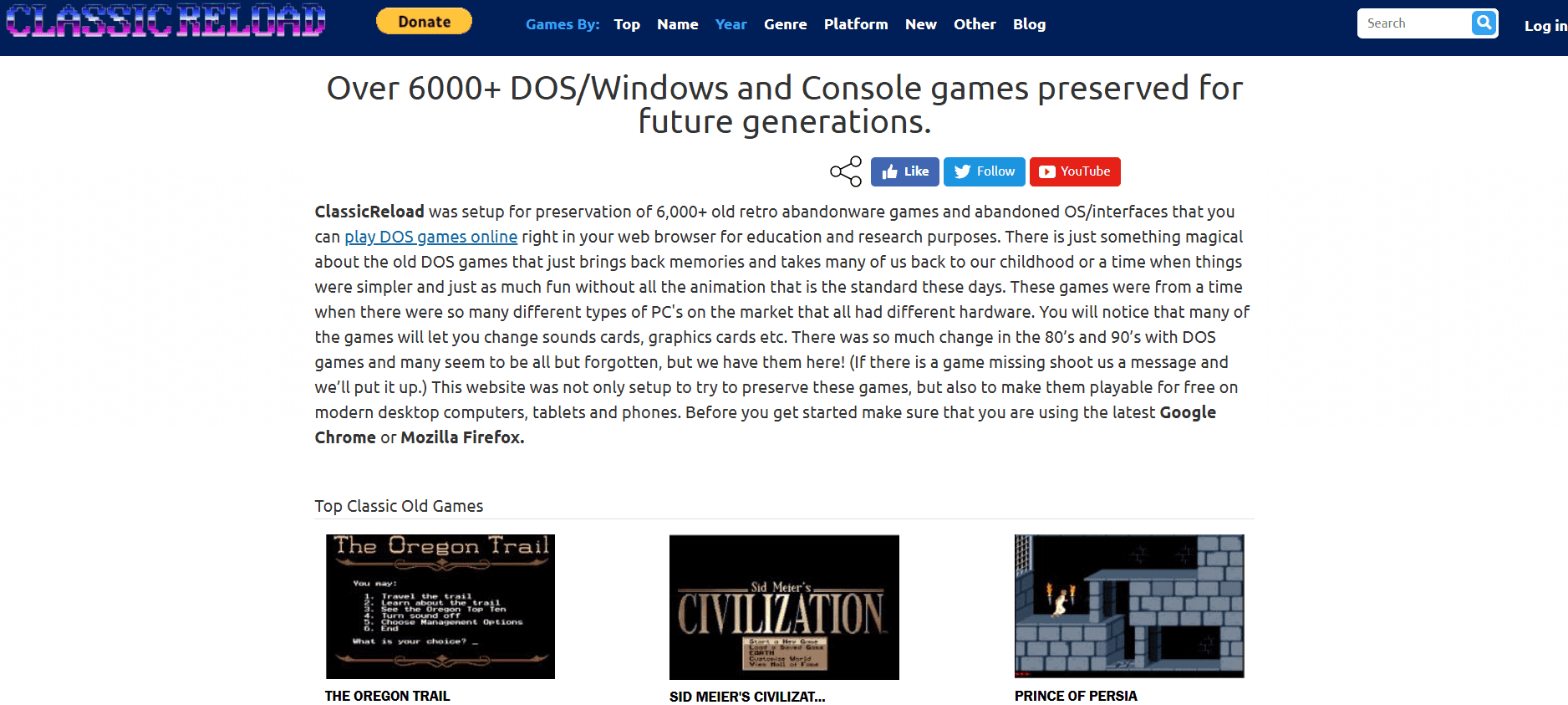إذا كنت تستمتع باللعب مباشرة في متصفحك، فإن Classic Reload مصمم لك. يقدم أكثر من ألف لعبة DOS كلاسيكية يمكنك لعبها دون الحاجة إلى تثبيت أي شيء. ما عليك سوى زيارته، اختيار لعبة، والبدء باللعب. إنه مثالي لمحبي الألعاب التي تعود إلى حقبة السبعينات حتى التسعينات. العيب الوحيد؟ يقتصر على ألعاب DOS المتوافقة مع محاكاة المتصفح.