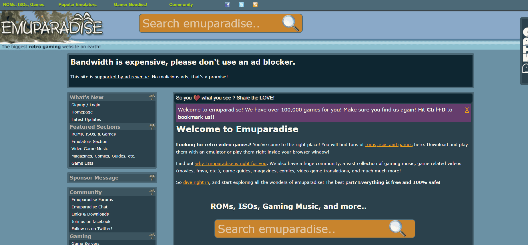 قد لا يمتلك EmuParadise الواجهة الأكثر إبهارًا، لكن مجموعته من ملفات ROM تعد واحدة من الأكثر إثارة للإعجاب. من أجهزة الأركيد إلى أجهزة الألعاب المحمولة، يضم كل شيء من SNES إلى Game Boy إلى ألعاب الكمبيوتر الكلاسيكية. يمكنك التصفية حسب المنصة أو تصفح “لعبة اليوم القديمة” (Retro Game of the Day) لمفاجآت ممتعة. كما يتميز بملفات ROM كاملة المجموعات ومجموعات ألعاب كاملة.
