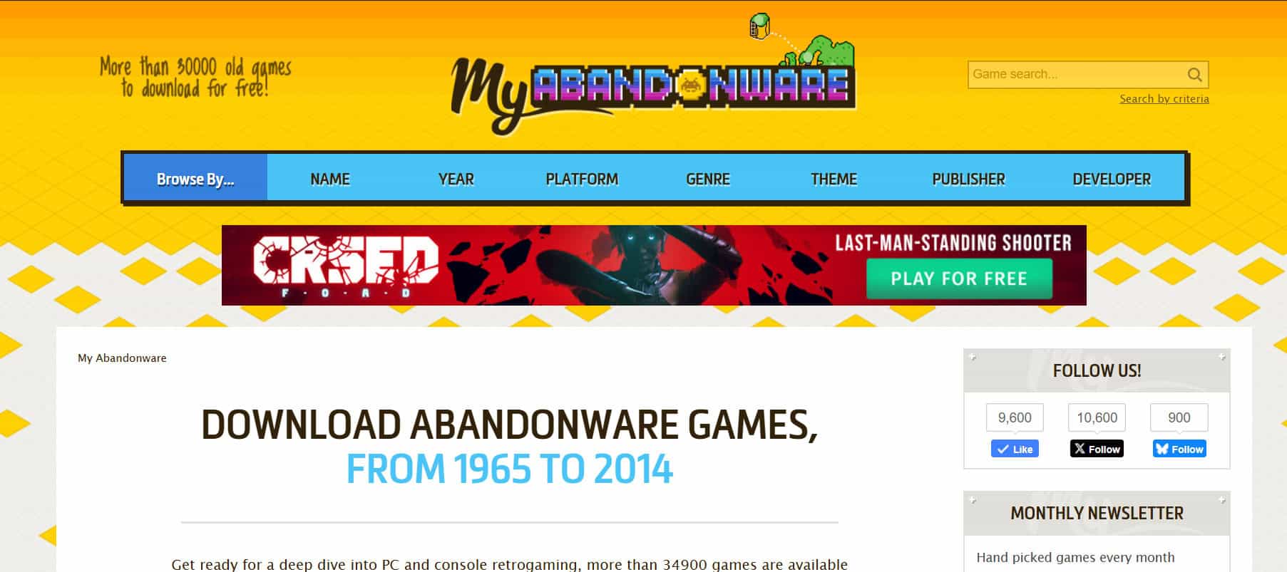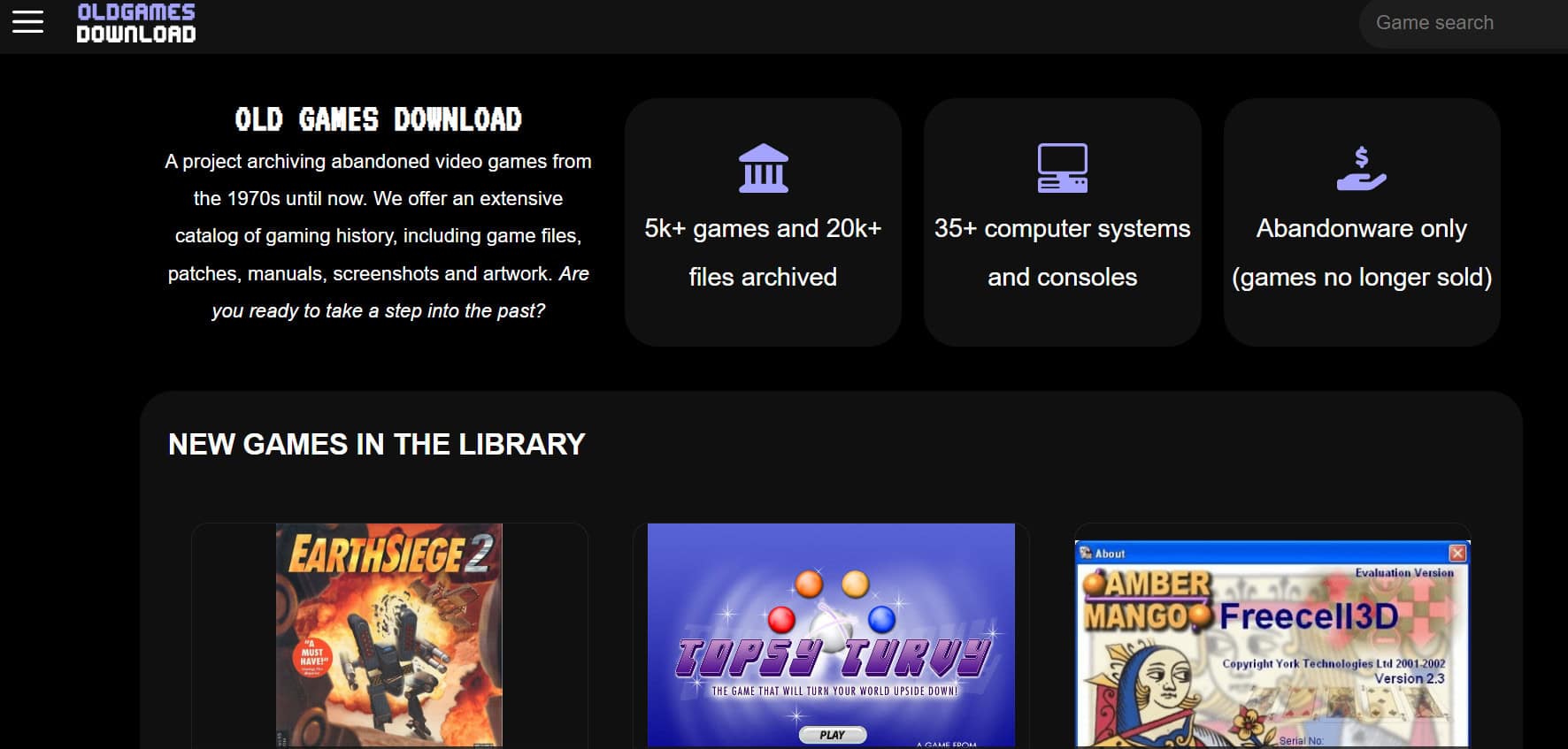 يُعد My Abandonware المفضل لدى المجتمع، ويضم واحدة من أكبر مجموعات ألعاب الكمبيوتر الكلاسيكية التي تعود إلى حقبة DOS و Windows المبكرة. ستجد عناوين تمتد من الثمانينات وصولاً إلى أوائل الألفية الجديدة. بينما يحتاج الموقع إلى تحديث بصري ويتطلب التسجيل الاختياري، فإن الكتالوج الغني ومراجعات المستخدمين تجعله محطة أساسية لعشاق الألعاب القديمة.