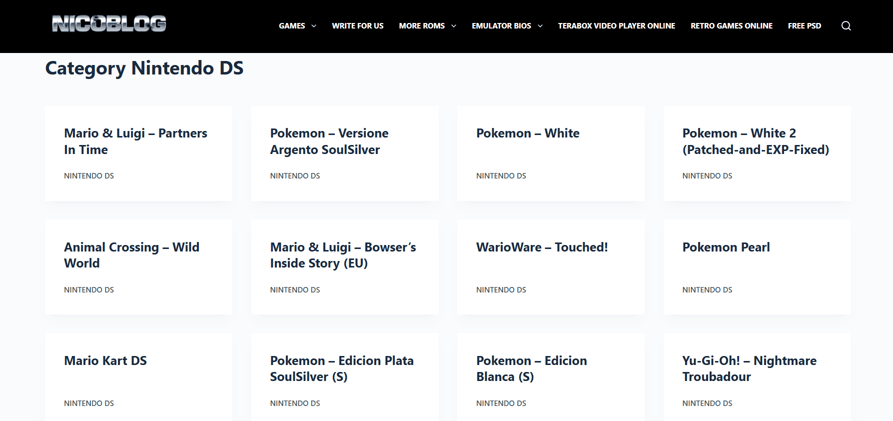 Nicoblog مثالي للاعبين الريترو الذين يبحثون عن تجربة تنزيل خالية من المتاعب. مع وصول مباشر إلى ملفات ROM لأنظمة مثل PSP و GBA و SNES و NES، إنه موقع مباشر يتجنب الإعلانات ولا يتطلب تسجيلات. الواجهة بسيطة والتصفح سلس، على الرغم من أن فهرسه ليس ضخمًا مثل بعض الخيارات الأخرى.
