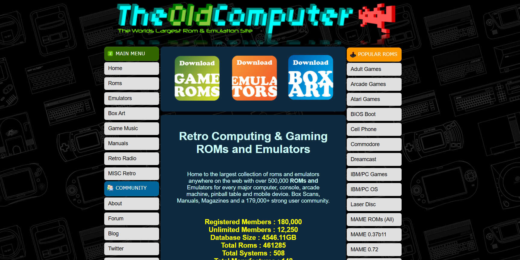 لطالما كان The Old Computer منصة موثوقة لتنزيل ملفات ROMs، حيث يستضيف آلاف ملفات الألعاب لأجهزة الكونسول مثل Dreamcast و Wii و Famicom وغيرها. يتم تشغيل شريط البحث بواسطة Google، مما يسهل العثور على الألعاب بسرعة. يوجد أيضًا منتدى نشط ومجتمع Discord حيث يناقش المعجبون الألعاب الكلاسيكية. بينما ستحتاج إلى التسجيل للوصول إلى بعض ملفات ROMs، فإن الموقع مجاني للاستخدام ويتم تحديثه بانتظام للحفاظ على الجودة.