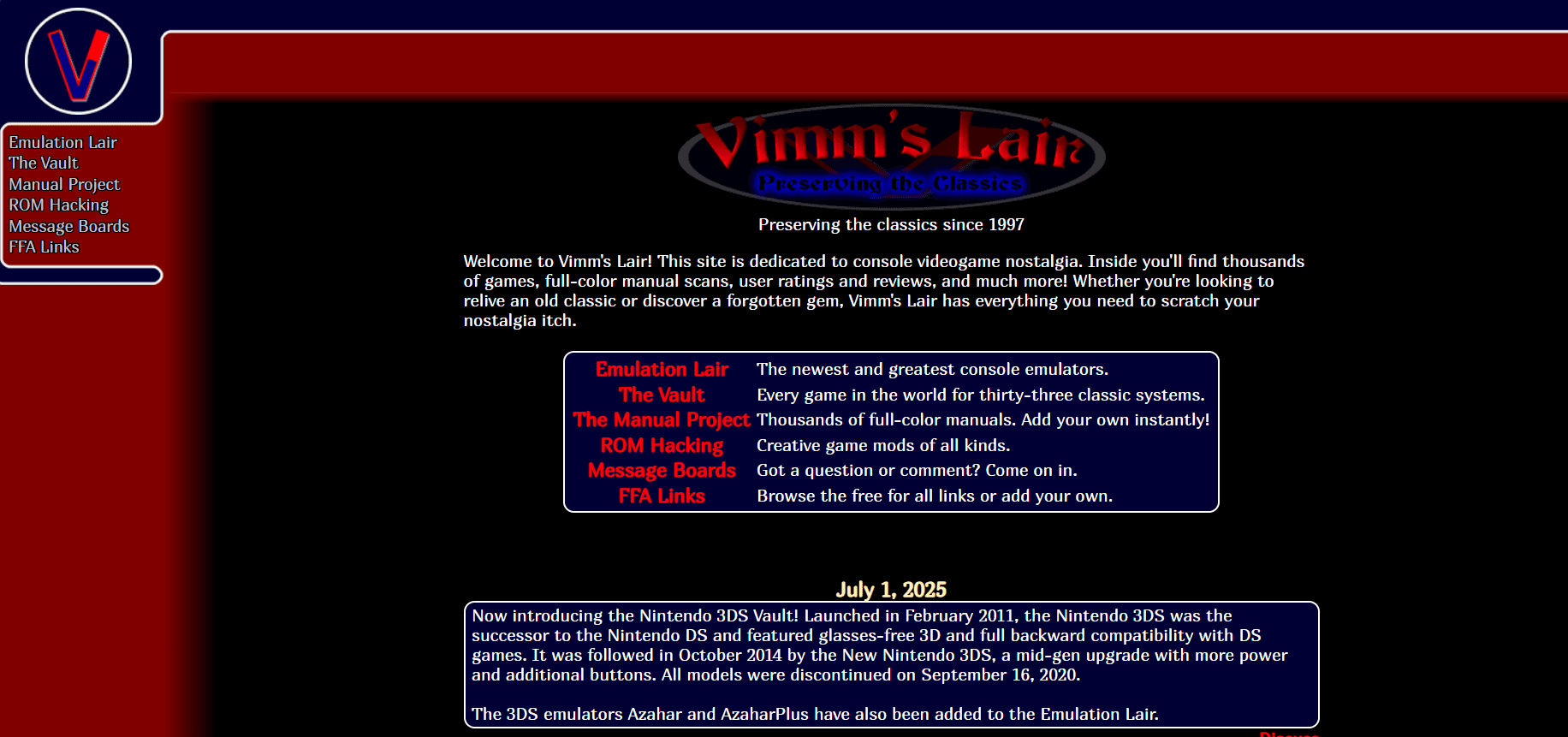 موقع مفضل لعشاق المحاكاة منذ فترة طويلة، يركز Vimm’s Lair على الألعاب المتخصصة التي تمتد من عصر Atari 2600 وصولاً إلى PSP. مع خيارات للعب بعض الألعاب مباشرة في متصفحك أو تنزيلها، يعد خيارًا قويًا لمحبي الأنظمة القديمة. تحتوي العديد من الألعاب على تنزيلات منفصلة للرسومات والصوت، لذا تأكد من الحصول على جميع الملفات المطلوبة. استخدم البحث أو الفلاتر المتقدمة للتنقل في هذا الأرشيف الغني بالألعاب الكلاسيكية.