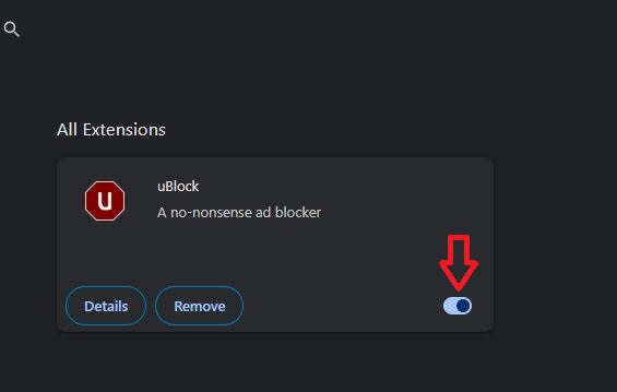 - انقر على زر التبديل لتعطيل إضافة AdBlock.