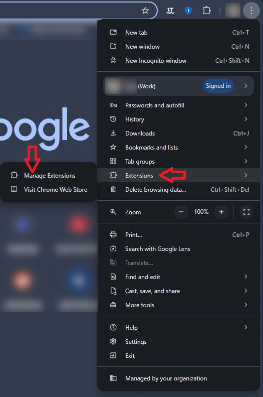 - افتح متصفحك وانقر على النقاط الرأسية الثلاث (ثلاث نقاط) في الزاوية العلوية اليمنى.