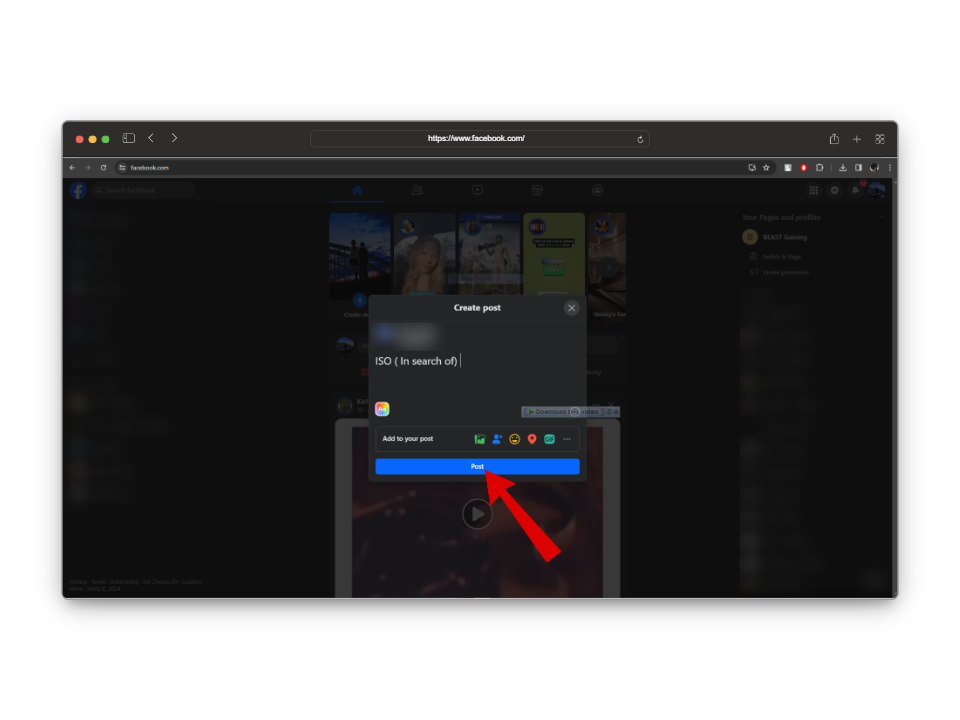 - اذهب إلى Facebook وانقر على “ماذا يدور في ذهنك؟” لإنشاء منشور. في مجموعة، انقر على “اكتب شيئًا ما“.