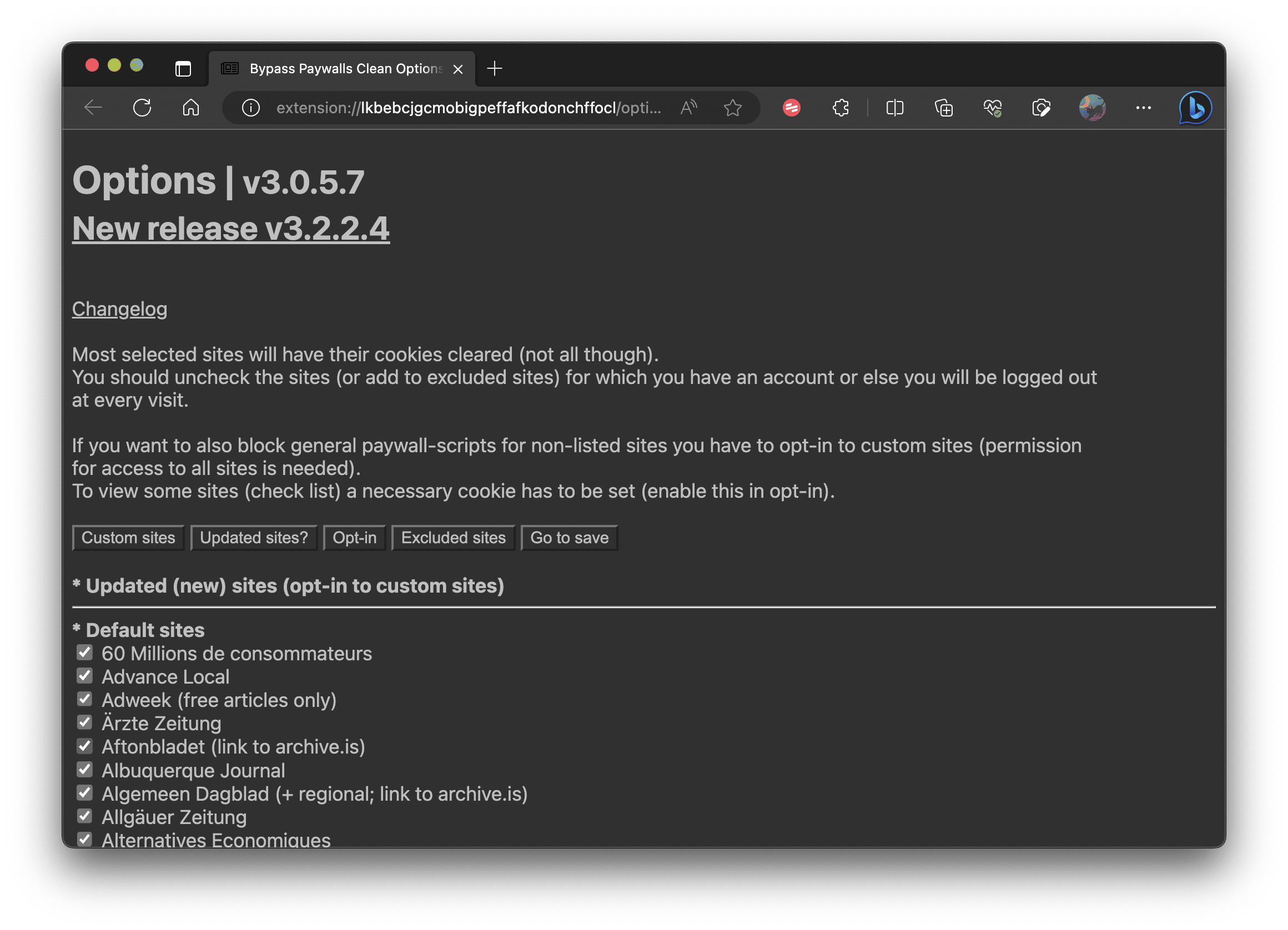 Unpaywall هي إحدى هذه الإضافات. بتثبيت Unpaywall، يمكن للمستخدمين قراءة المقالات بسهولة على مواقع ويب معينة دون اشتراك. Bypass Paywalls هو خيار رائع آخر، ولكنه أكثر تعقيدًا ومتاح فقط على GitHub. توجه الأداة المستخدمين إلى نسخة مخبأة من موقع الويب لأنها غير محجوبة بجدار دفع، ويمكنك تخصيص كل شيء تقريبًا في تجربتك.