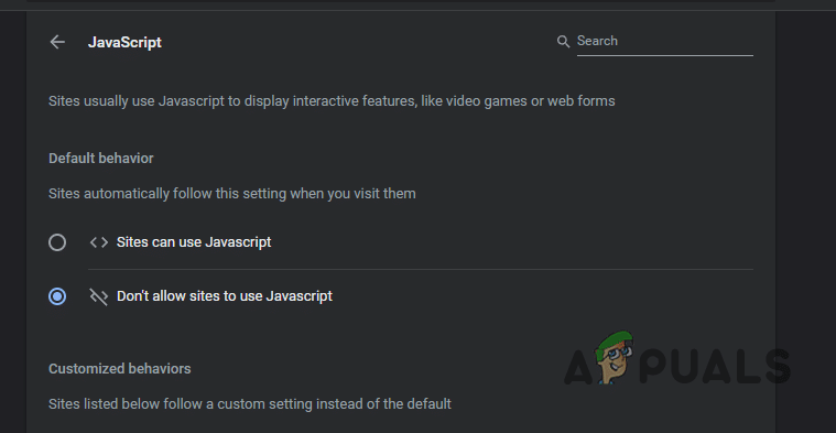 - غيّر الإعداد إلى عدم السماح للمواقع باستخدام JavaScript