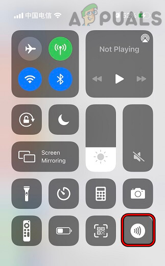 5. ثم اسحب للأسفل على شاشة iPhone وانقر على قارئ علامات NFC لتفعيله.