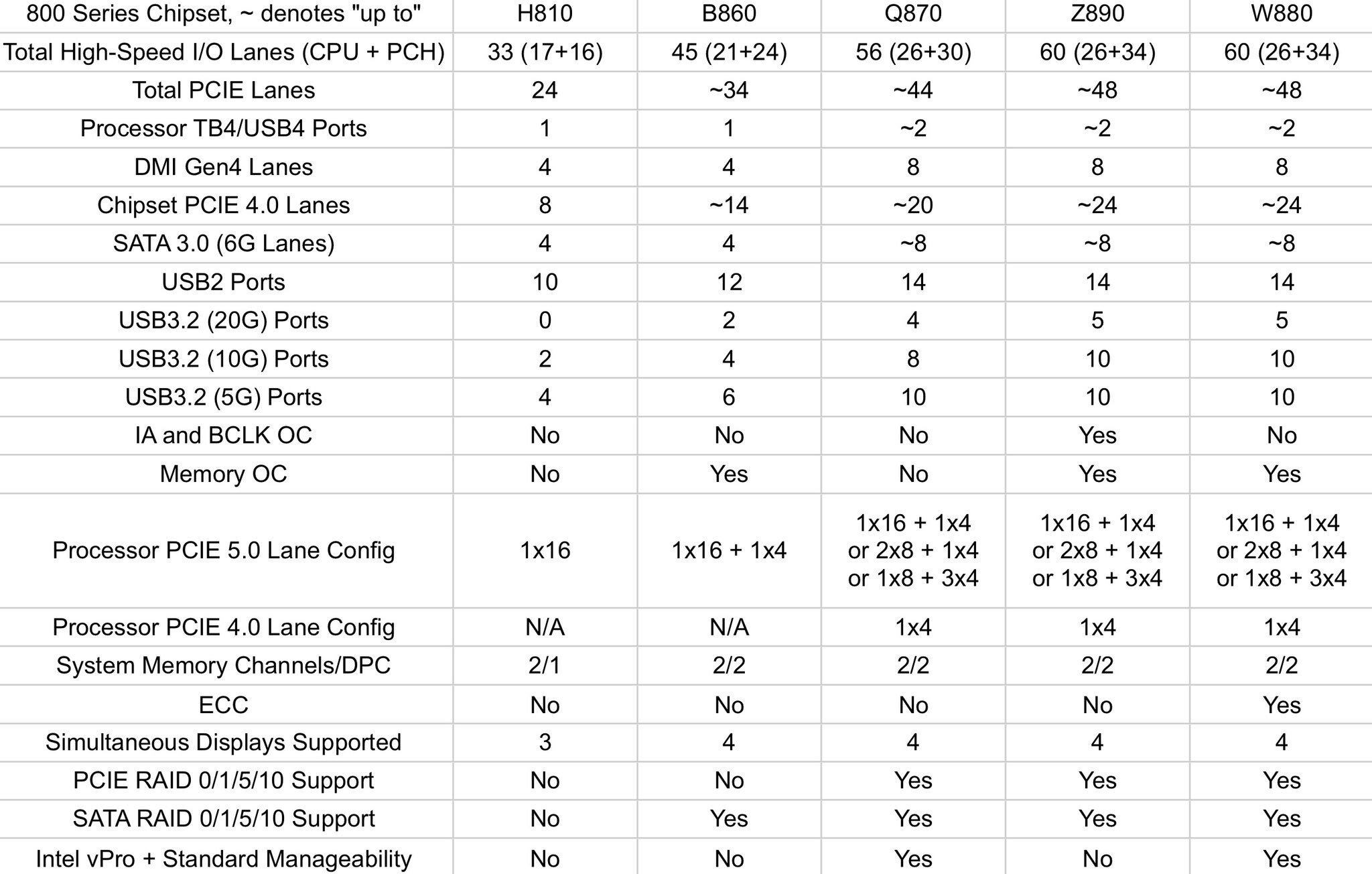 ومع ذلك، فإن نقطة قوية لصالح PCIe 5.0 هي أن بعض لوحات Z890 القادمة من Intel يُشاع أنها ستتميز بفتحة x8 PCIe 5.0 (ما يعادل x16 PCIe 4.0 لـ 32 GB/s) لوحدة معالجة الرسوميات (GPU). وهذا يترك 3 فتحات x4 PCIe 5.0 لمحركات SSDs، متصلة مباشرة بوحدة المعالجة المركزية (CPU)، بالإضافة إلى فتحة x4 PCIe 4.0 أخرى. لذا، تحصل على أفضل ما في العالمين مع توفير نطاق ترددي (bandwidth) أكثر من كافٍ لوحدة معالجة الرسوميات (GPU).