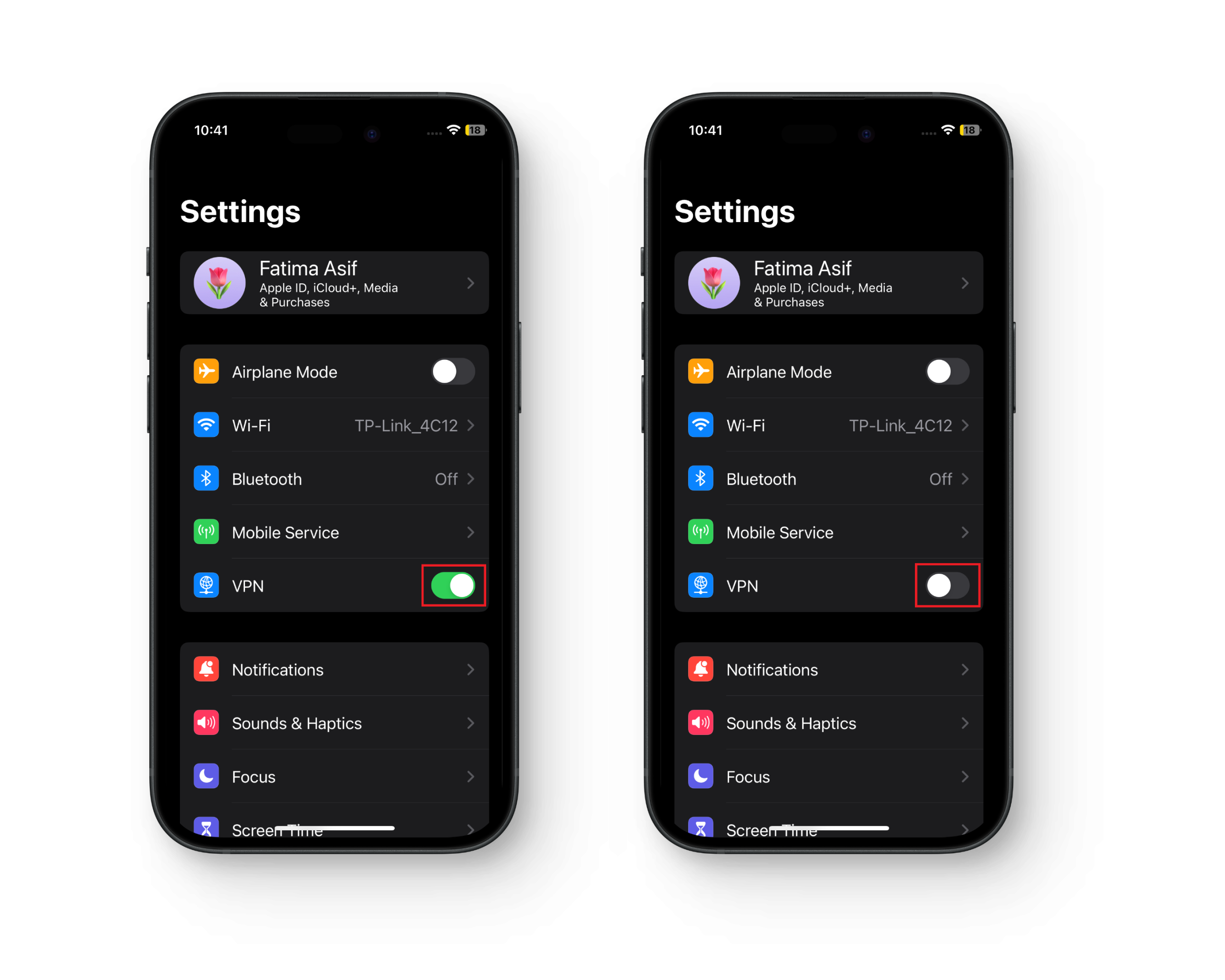 - قم بتبديل المفتاح بجوار إعدادات VPN لتعطيله.