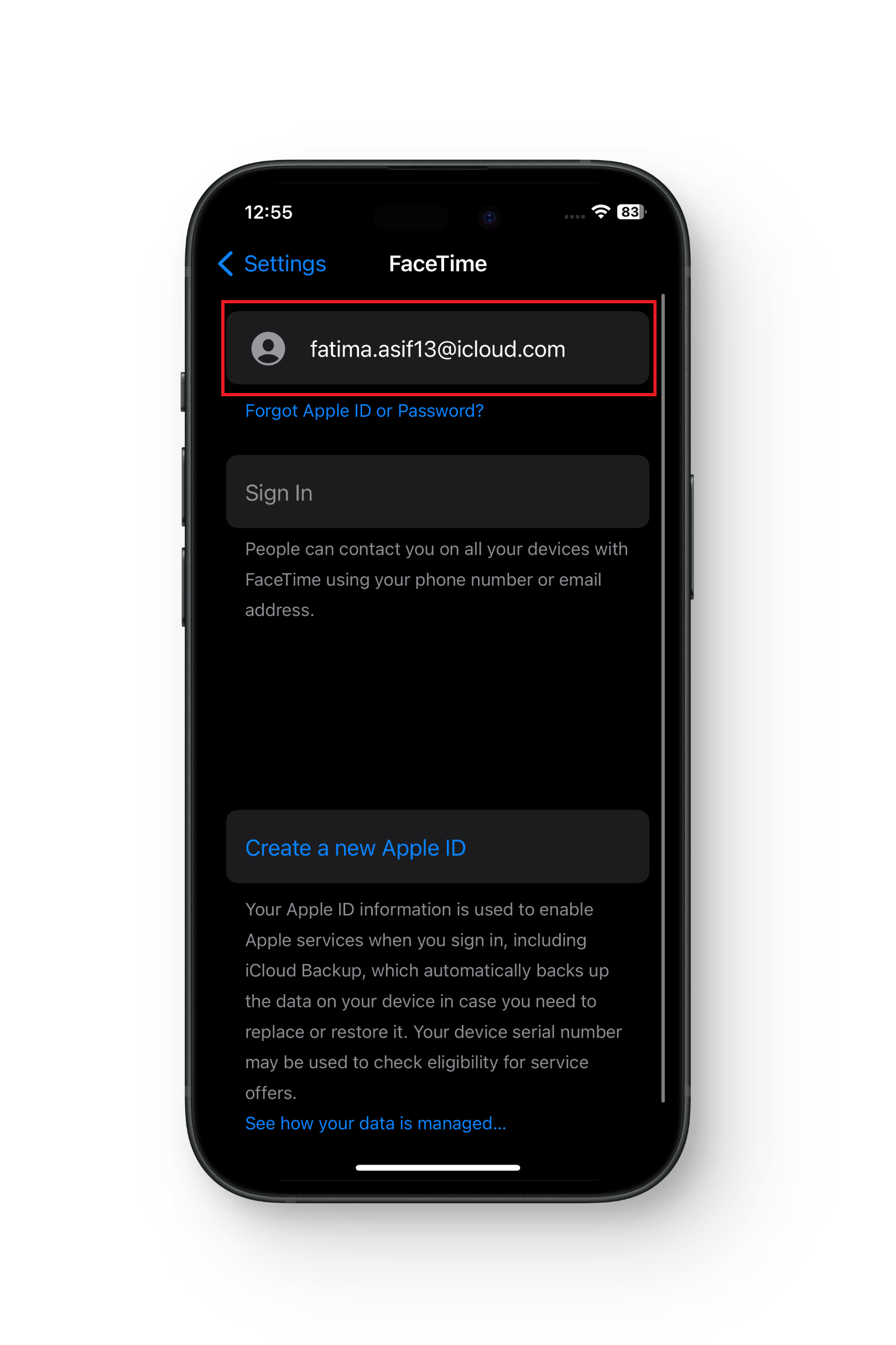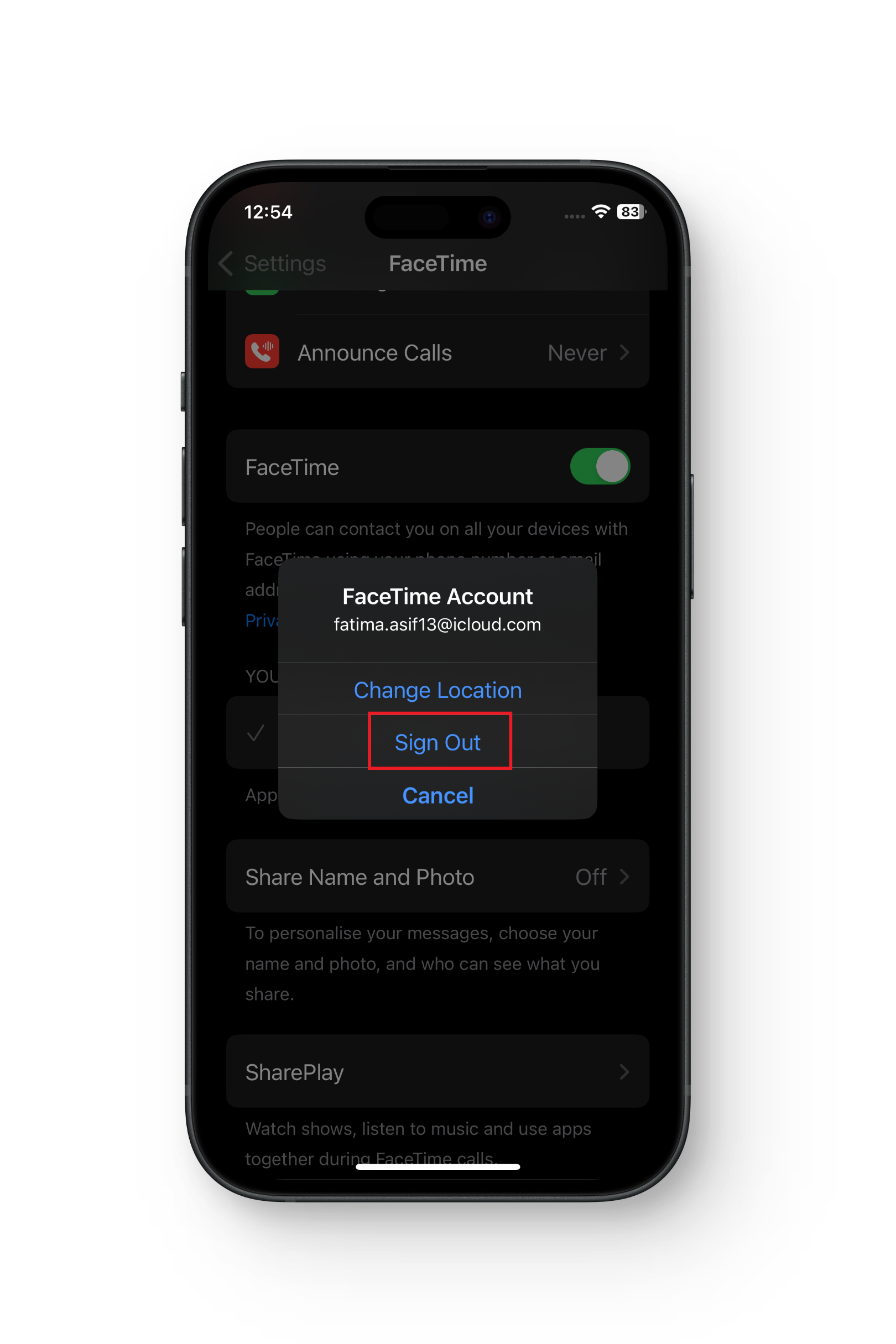 من خلال تسجيل الخروج ثم تسجيل الدخول مرة أخرى إلى FaceTime على جهازك، يمكنك تحديث إعدادات التطبيق وربما حل أي مشكلات أساسية تتسبب في إنهاء مكالمات FaceTime بشكل غير متوقع. إليك كيفية القيام بذلك: