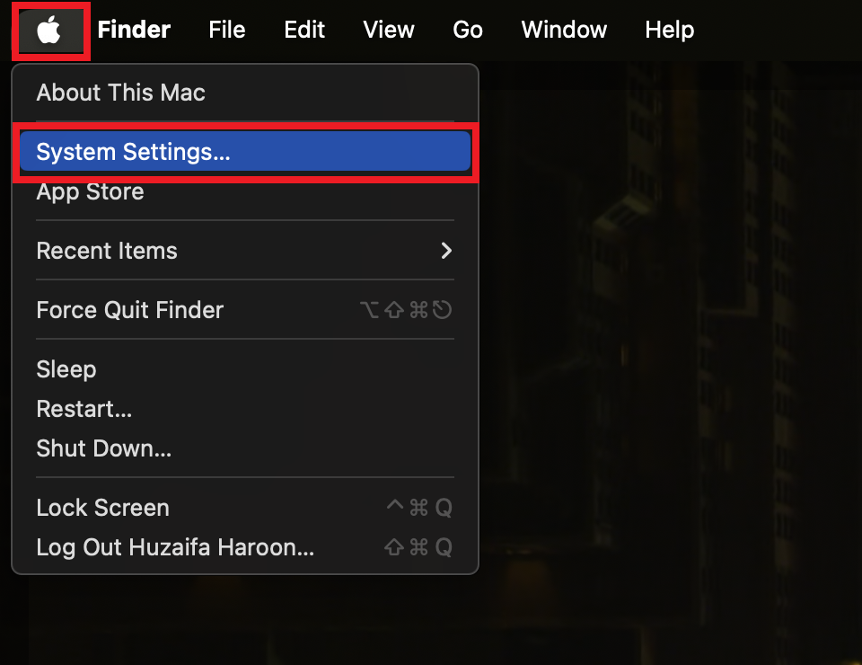 - انتقل إلى قائمة Apple واختر “إعدادات النظام.”