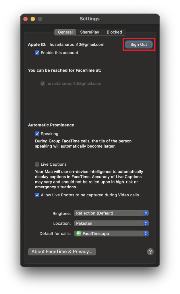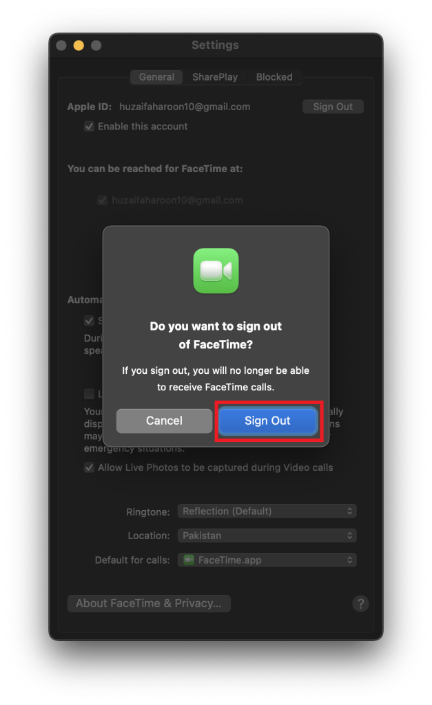 4. سجّل الخروج من FaceTime ثم سجّل الدخول مرة أخرى