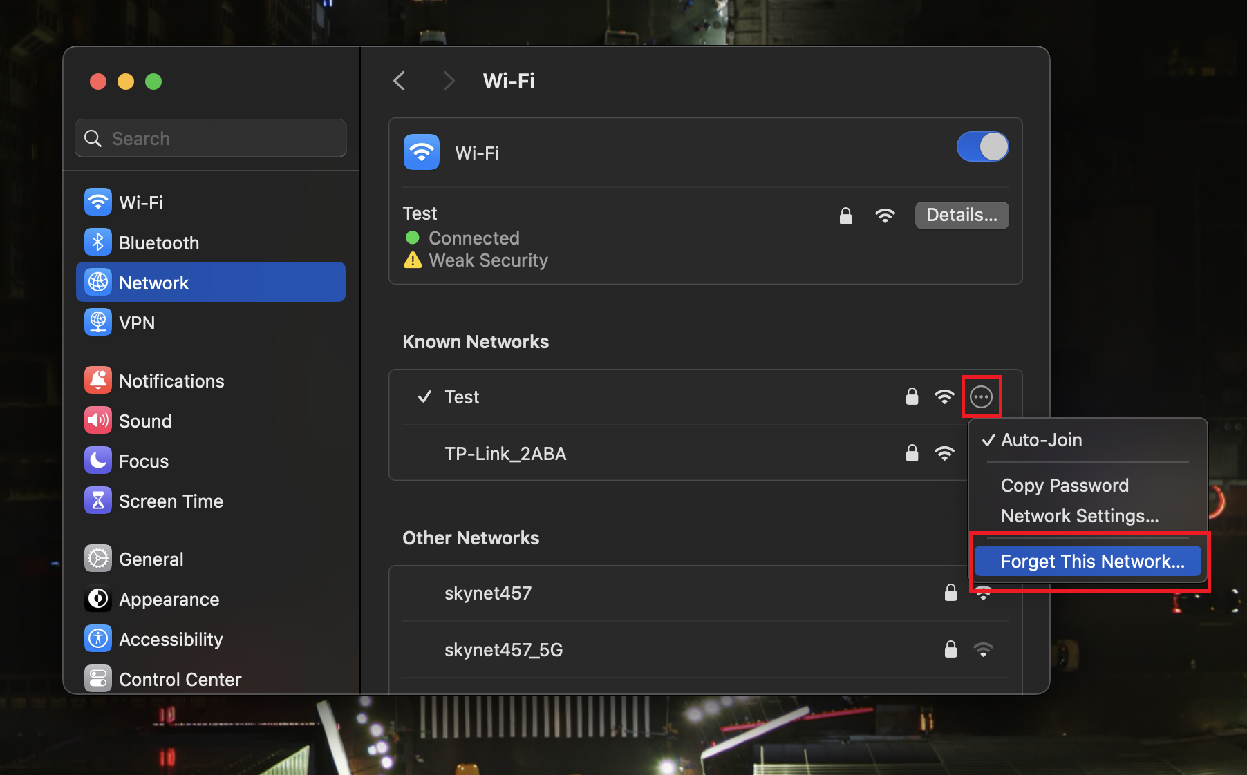 - الآن، حدد “نسيان هذه الشبكة…“.