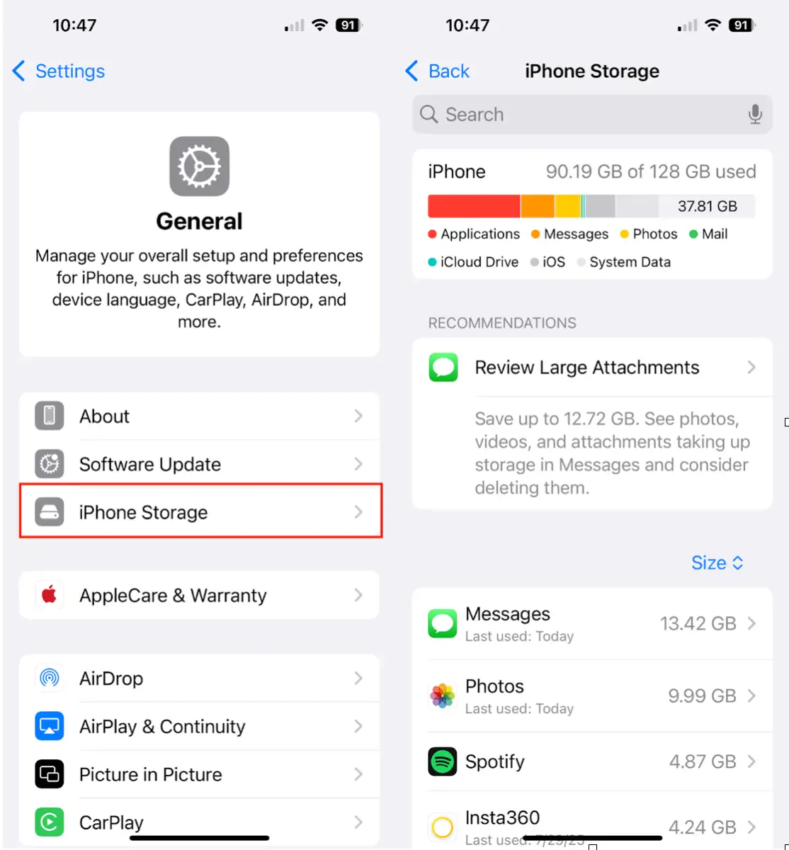 5. إعادة فحص مساحة تخزين iPhone