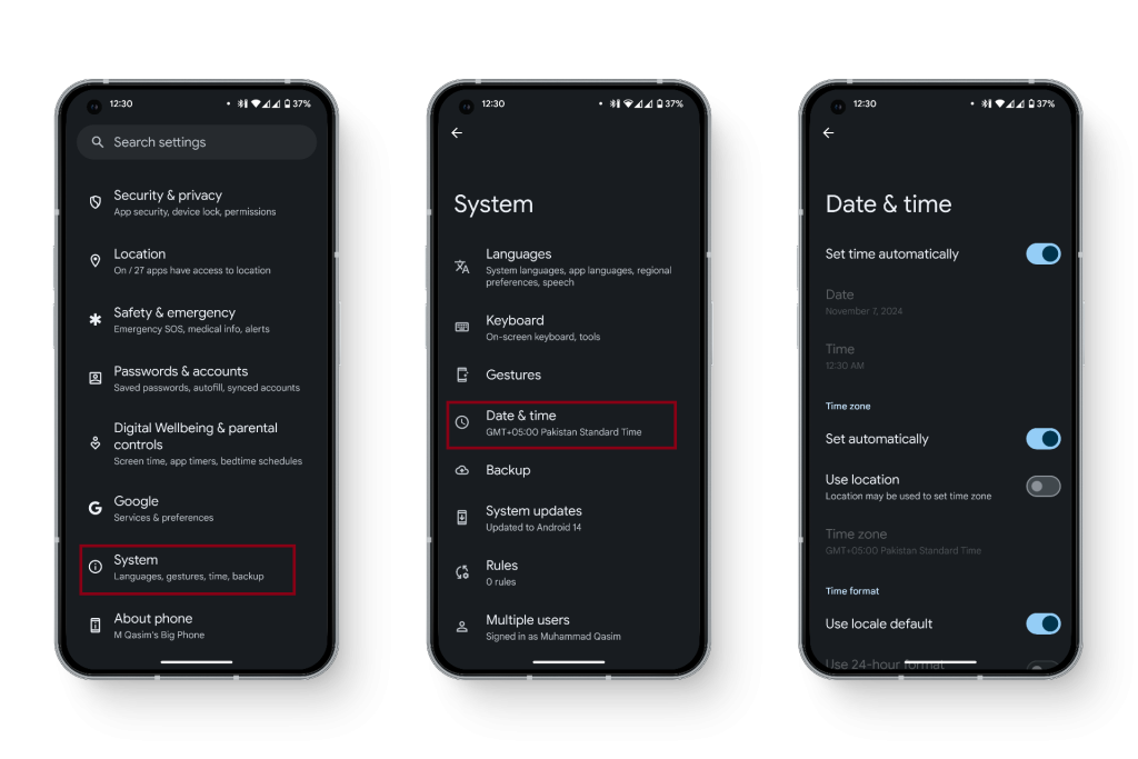 ملاحظة: تم تطبيق هذه الخطوات على جهاز Pixel. قد تختلف خطوات تغيير إعدادات التاريخ والوقت على جهازك.