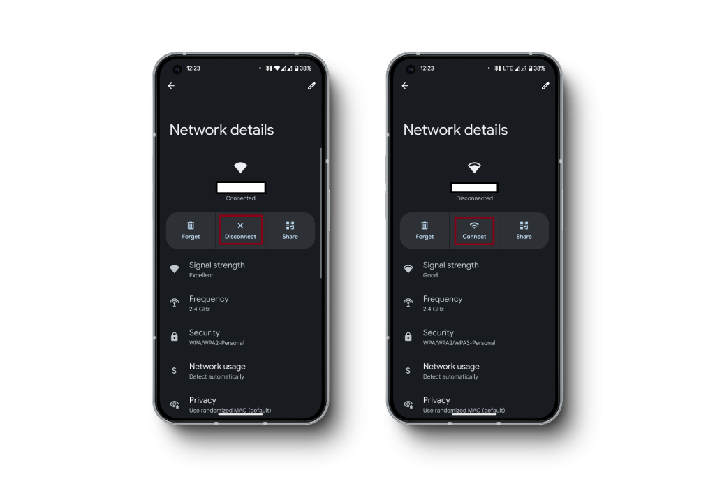عندما تكون متصلاً بشبكة Wi-Fi على هاتفك المحمول، ولا يوجد اتصال، حاول إعادة تشغيل الاتصال المحدد. قد يحل هذا أي تعارضات في الشبكة داخل الجهاز نفسه. يمكنك أيضًا التبديل إلى شبكة مختلفة، ويفضل أن تكون بيانات الهاتف المحمول، للتحقق مما إذا كانت المشكلة تكمن في الشبكة المعنية.