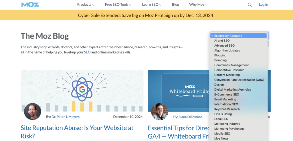 لقد تمكنت Moz من وضع نفسها كمصدر موثوق للمعلومات في هذا المجال، مما يوفر حركة مرور ومشاركة كبيرة من حيث SEO.